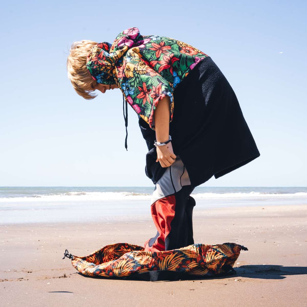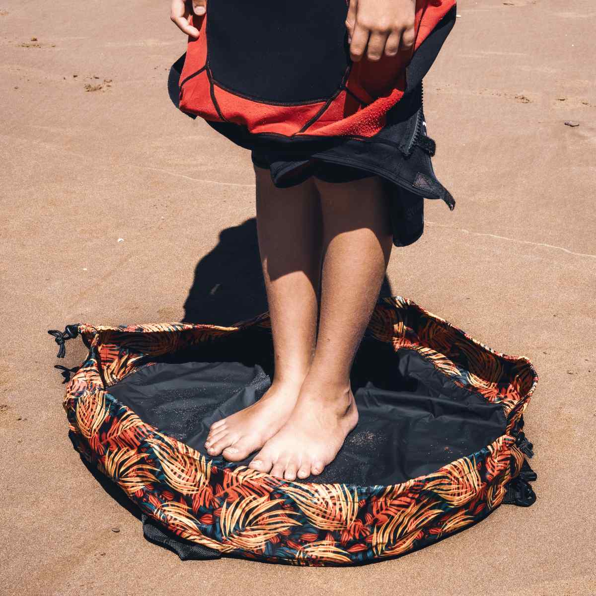 • Función: Permite cambiarse cómodamente sin ensuciarse; luego se convierte en bolso para guardar el neoprene y accesorios mojados.