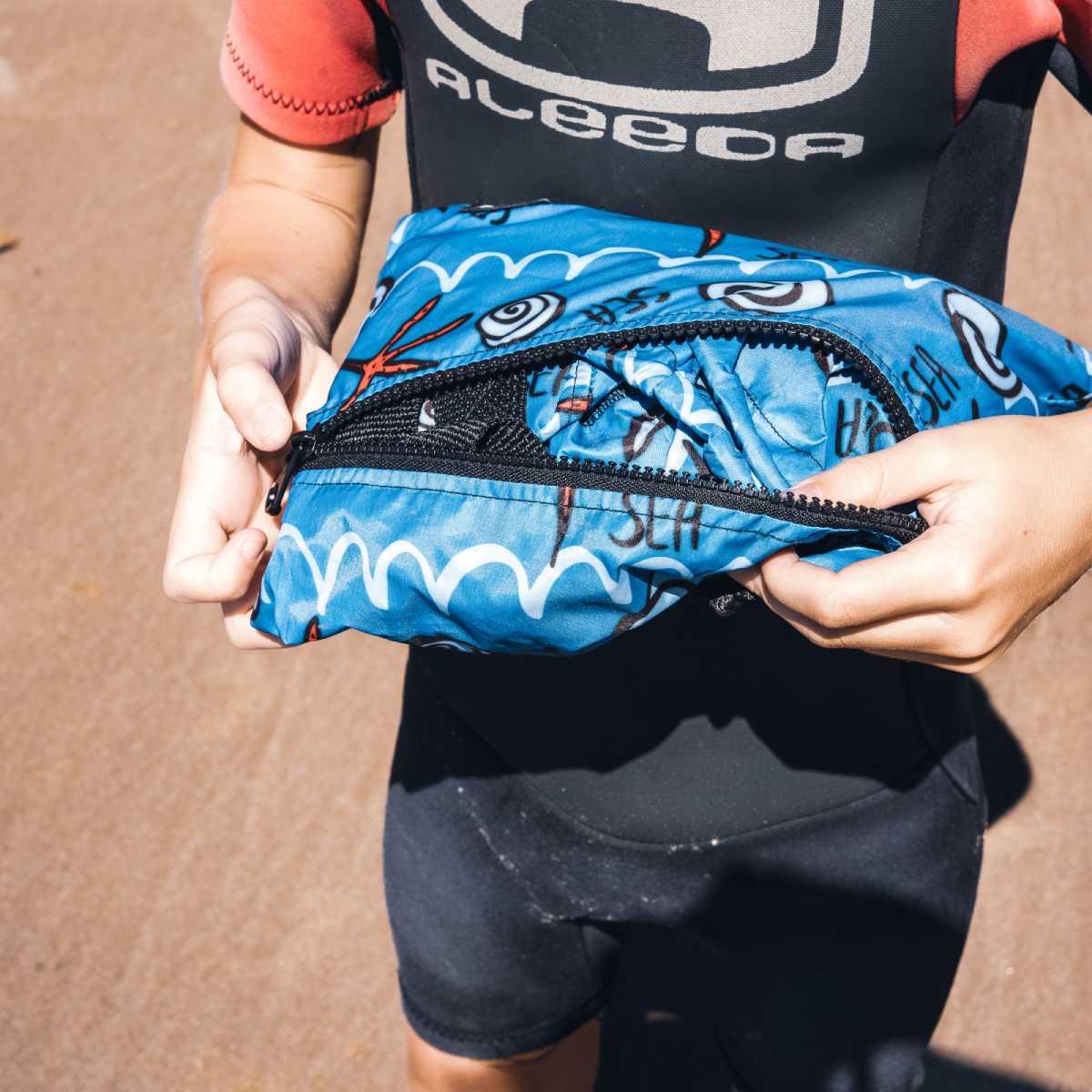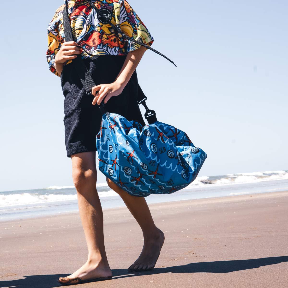Dejás todo lo mojado adentro, lo enrollás, lo cerrás… y listo! Llevalo como te quede más práctico, como bolsa con sus manijas, o como bolso con su correa regulable. Porque cada cambio merece estar a la altura de tu aventura.