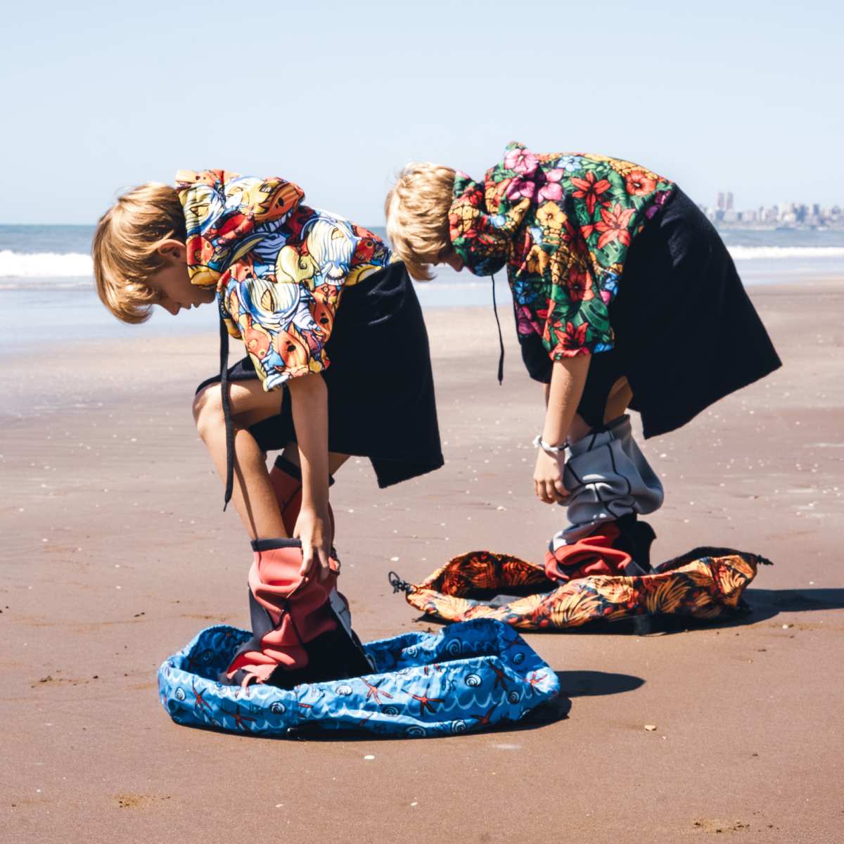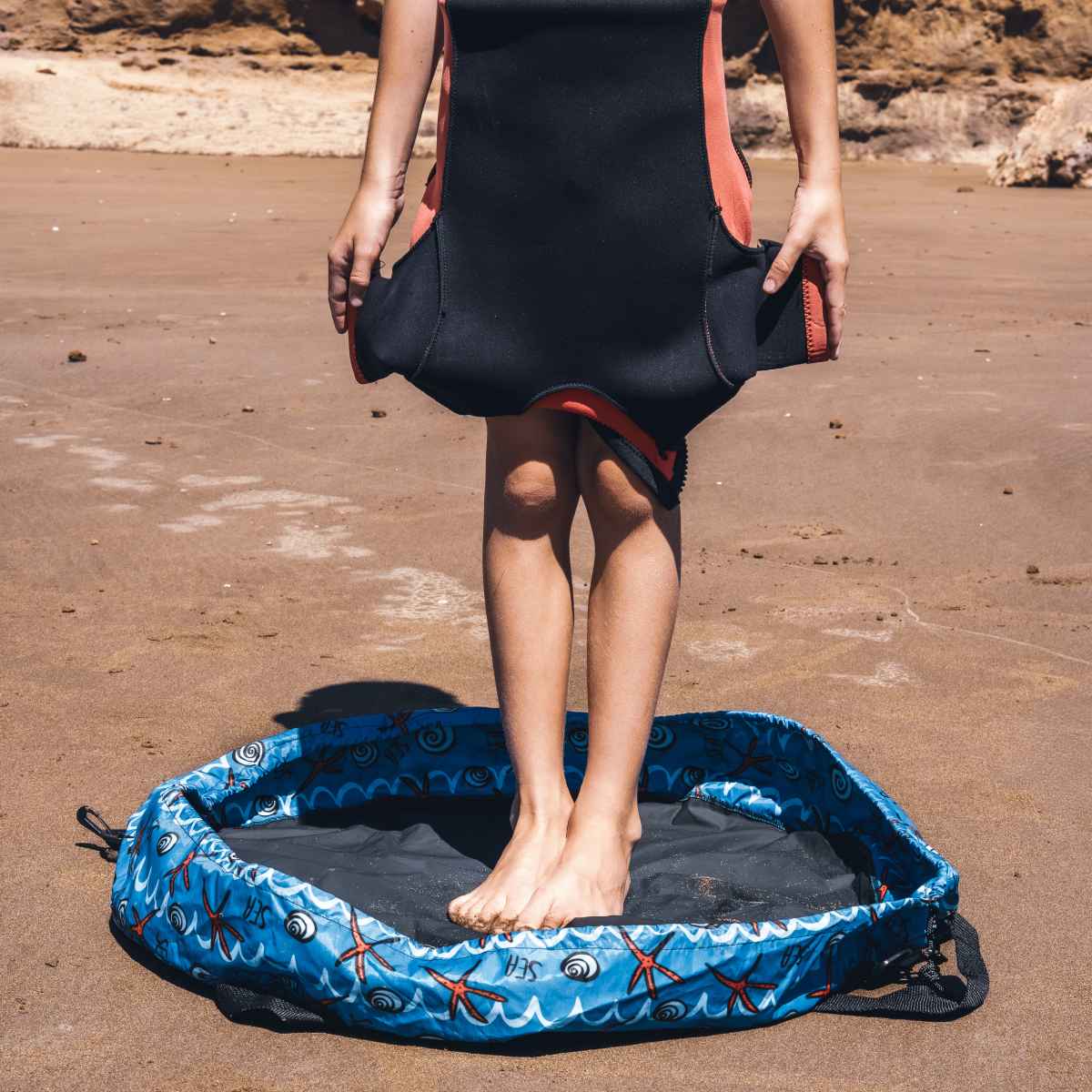 • Función: Permite cambiarse cómodamente sin ensuciarse; luego se convierte en bolso para guardar el neoprene y accesorios mojados.