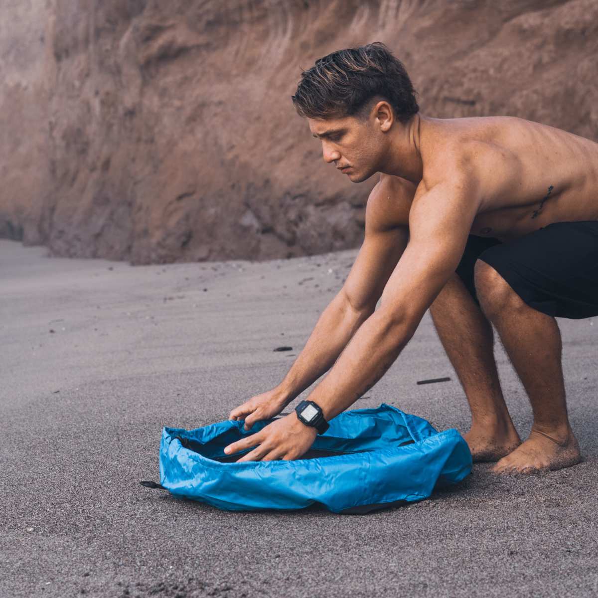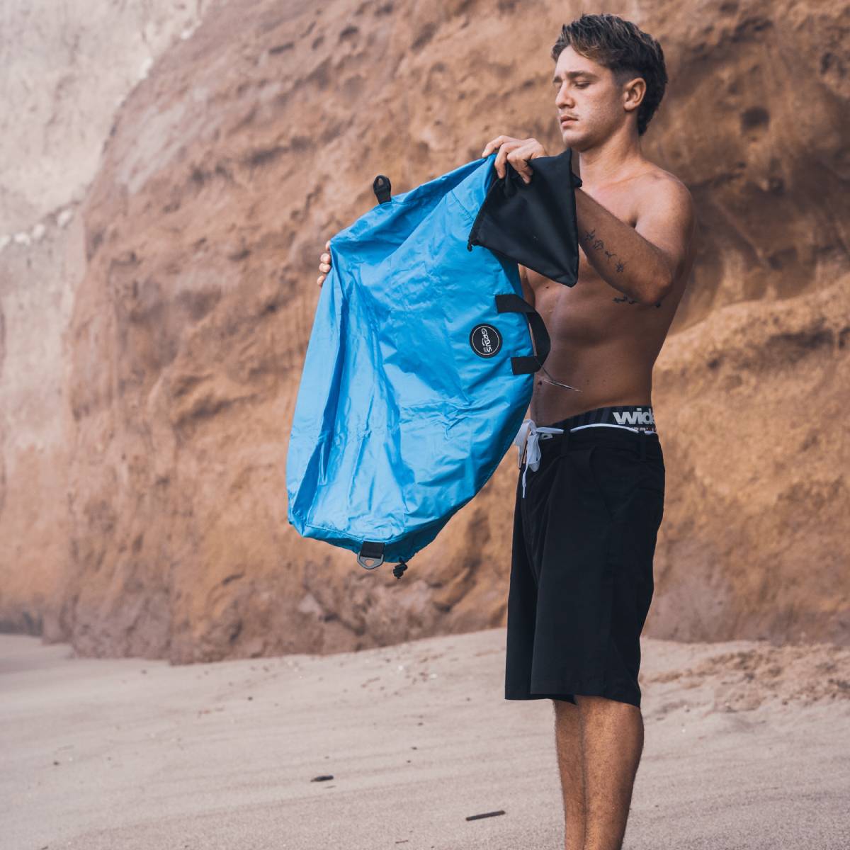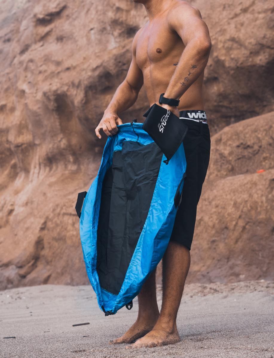 • Función: Permite cambiarse cómodamente sin ensuciarse; luego se convierte en bolso para guardar el neoprene y accesorios mojados.