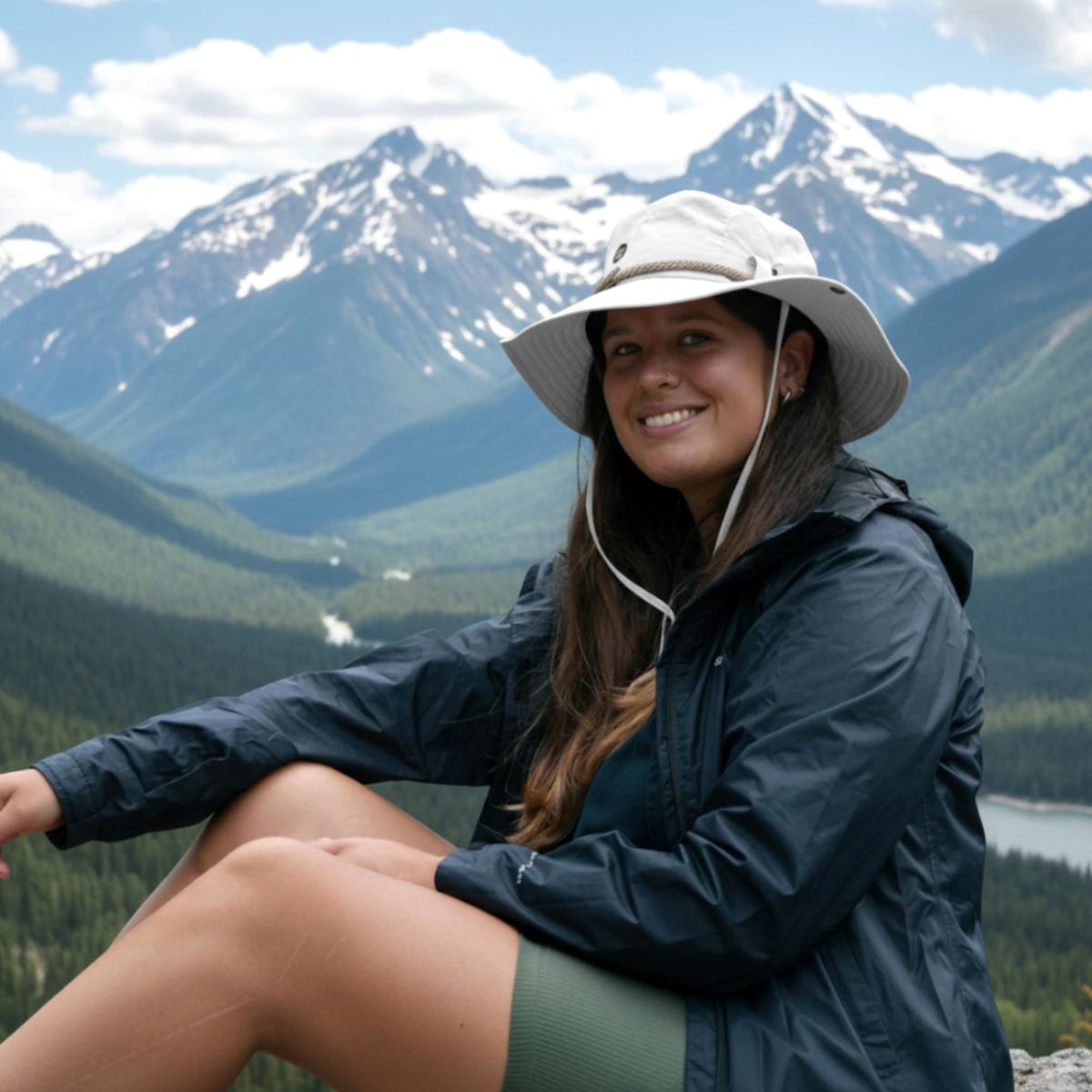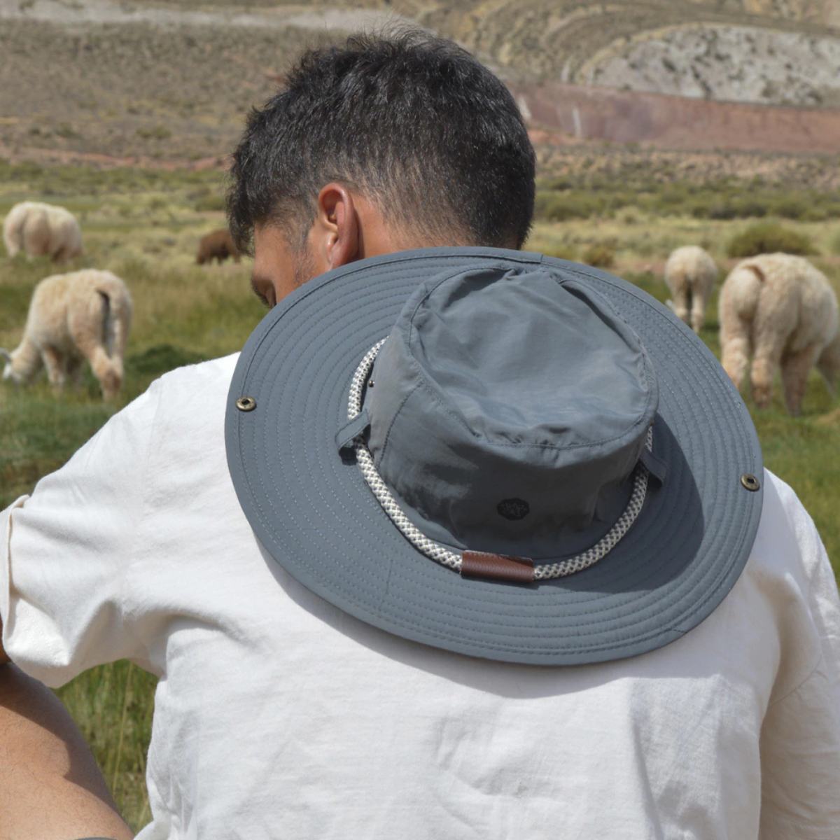 • Protección Solar 360°: Ala ancha y reforzada que protege rostro, orejas y cuello de la exposición directa al sol.