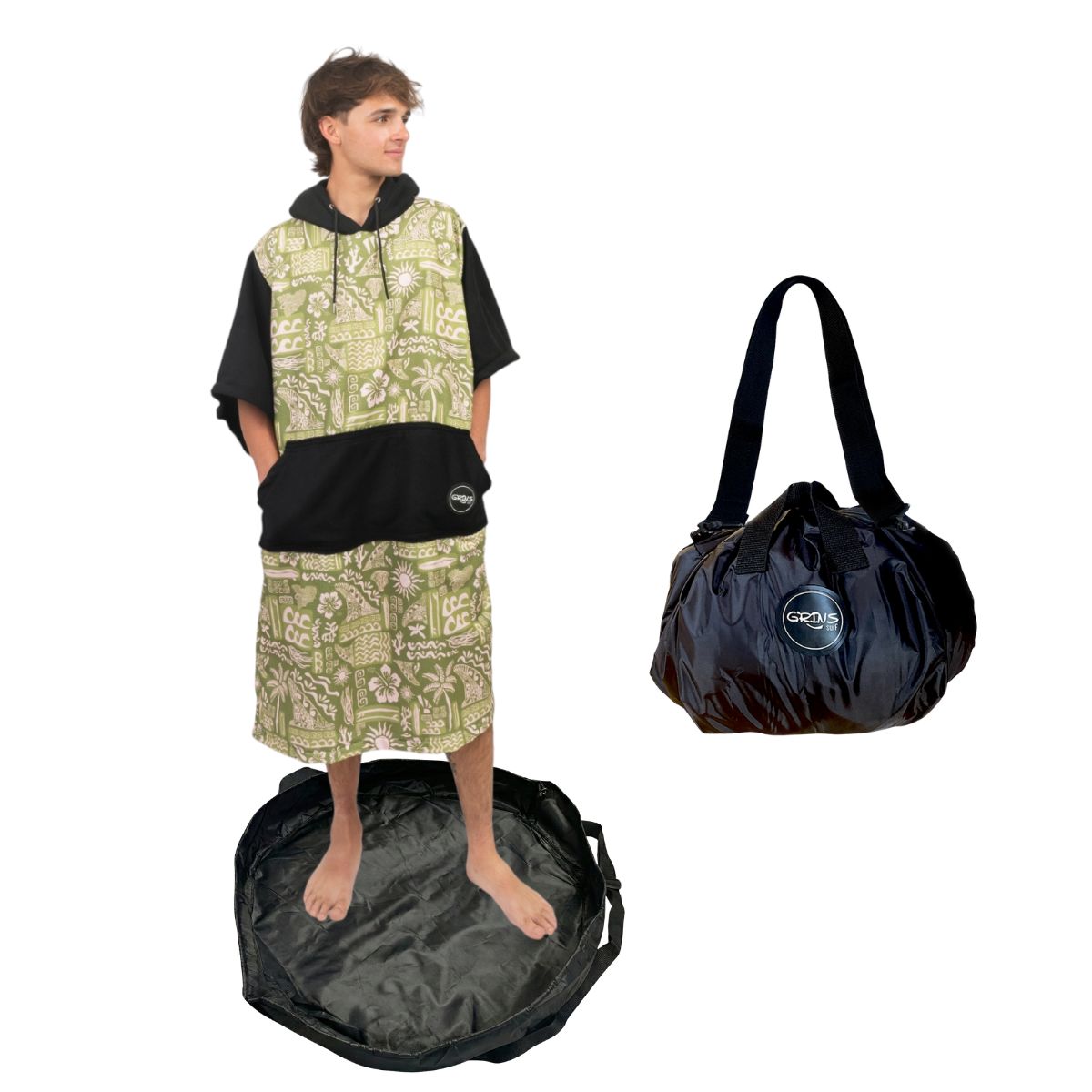 • Change Mat: Este cambiador te espera a la salida del agua: firme, limpio y listo para vos. Te cambiás sin pisar arena, barro ni piedras, después lo cerrás para llevar el neoprene mojado sin enchastrar nada. Es impermeable, práctico y fácil de llevar. Dejás todo lo mojado adentro, lo enrollás, lo cerrás… y listo! Llevalo como te quede más práctico, como bolsa con sus manijas, o como bolso con su correa regulable.