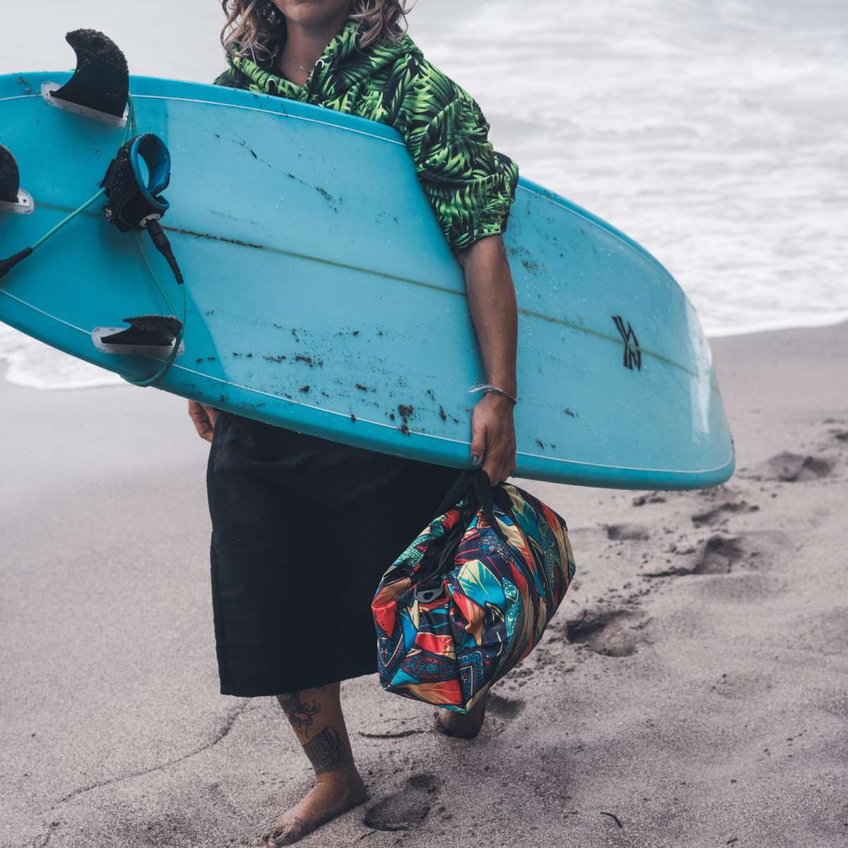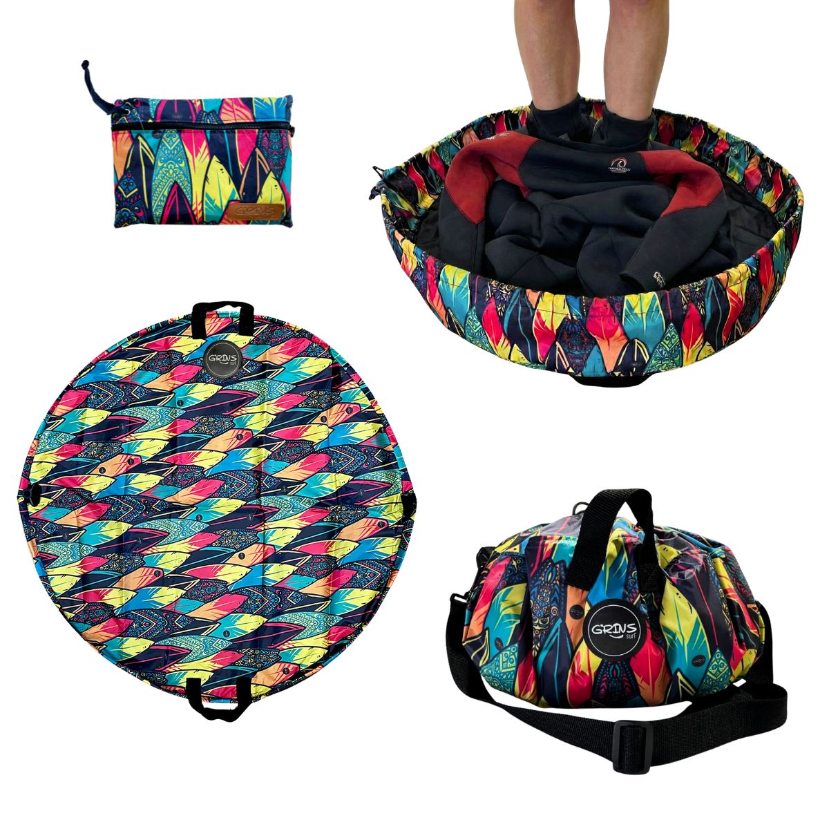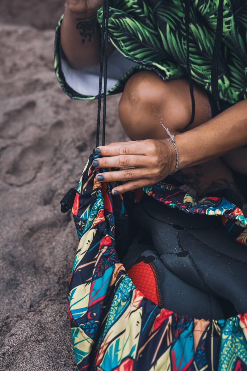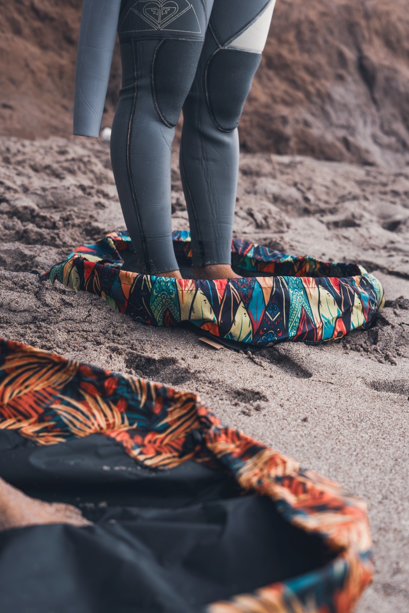 • Función: Permite cambiarse cómodamente sin ensuciarse; luego se convierte en bolso para guardar el neoprene y accesorios mojados.