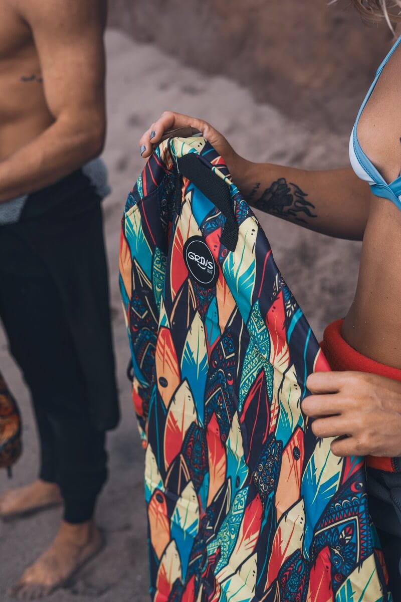 • Función: Permite cambiarse cómodamente sin ensuciarse; luego se convierte en bolso para guardar el neoprene y accesorios mojados.