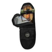 • Comodidades: Bolsillo Exterior – Bolsillo Interior – Correas Mochila – Manija de Acarreo PVC – Correa Interior Regulable para Sujetar el Skate.