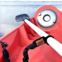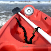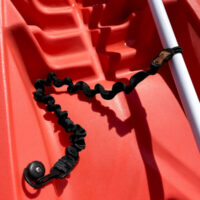 • Cuenta con cordón elástico en un extremo para asegurar al remo, y hebilla para asegurar al kayak en el otro extremo