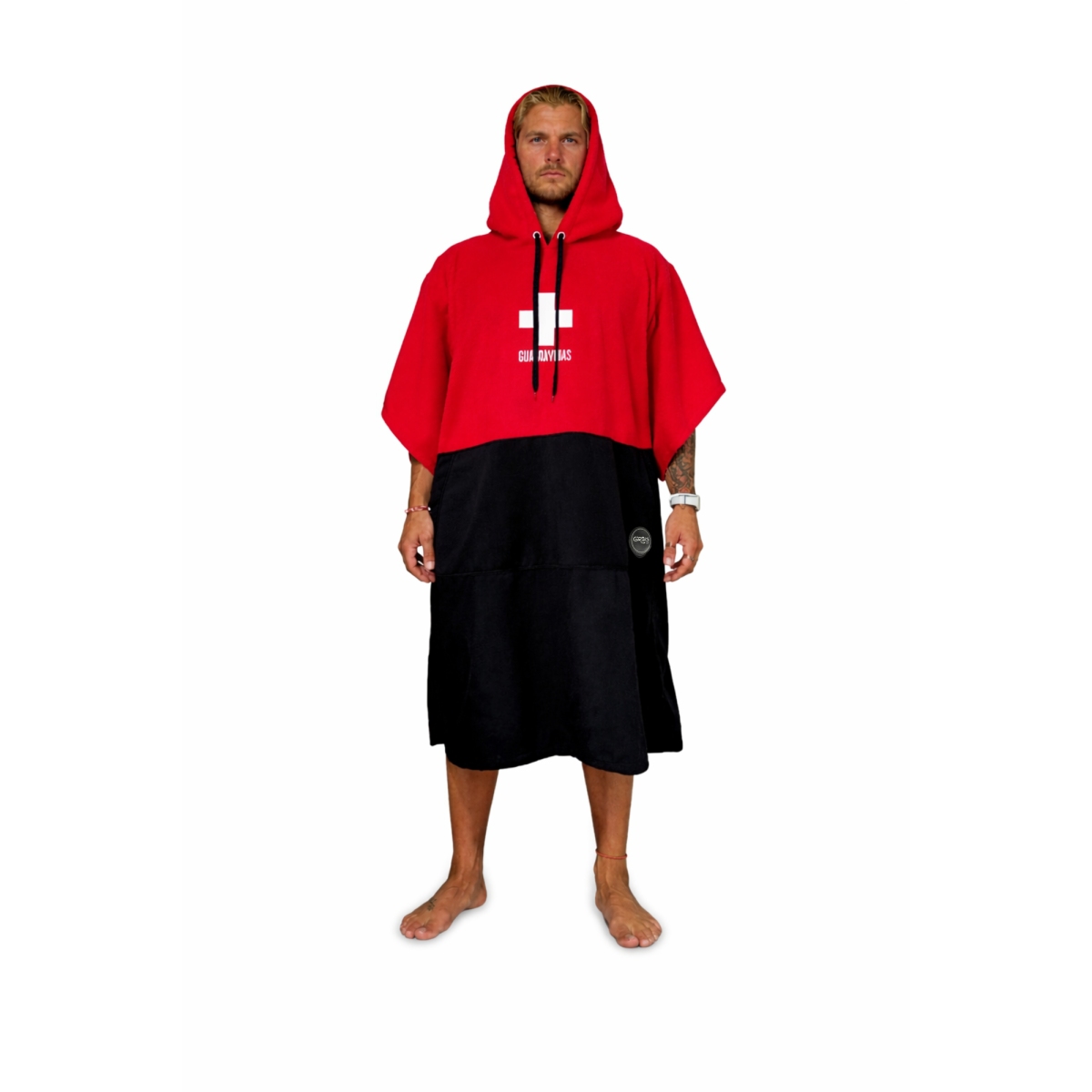Hecho con toalla microfibra suave, gruesa y abrigada, te permite secarte rápido y mantener el cuerpo caliente incluso en jornadas largas. Ideal para guardavidas que entran y salen del agua constantemente.