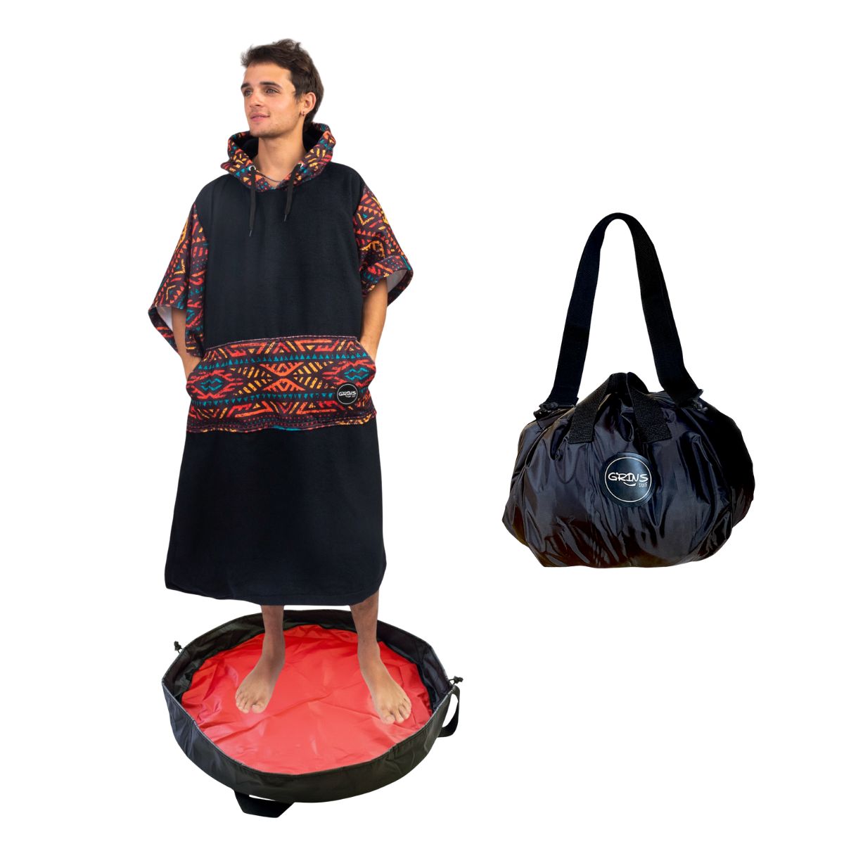 • Change Mat: Este cambiador te espera a la salida del agua: firme, limpio y listo para vos. Te cambiás sin pisar arena, barro ni piedras, después lo cerrás para llevar el neoprene mojado sin enchastrar nada. Es impermeable, práctico y fácil de llevar. Dejás todo lo mojado adentro, lo enrollás, lo cerrás… y listo! Llevalo como te quede más práctico, como bolsa con sus manijas, o como bolso con su correa regulable.