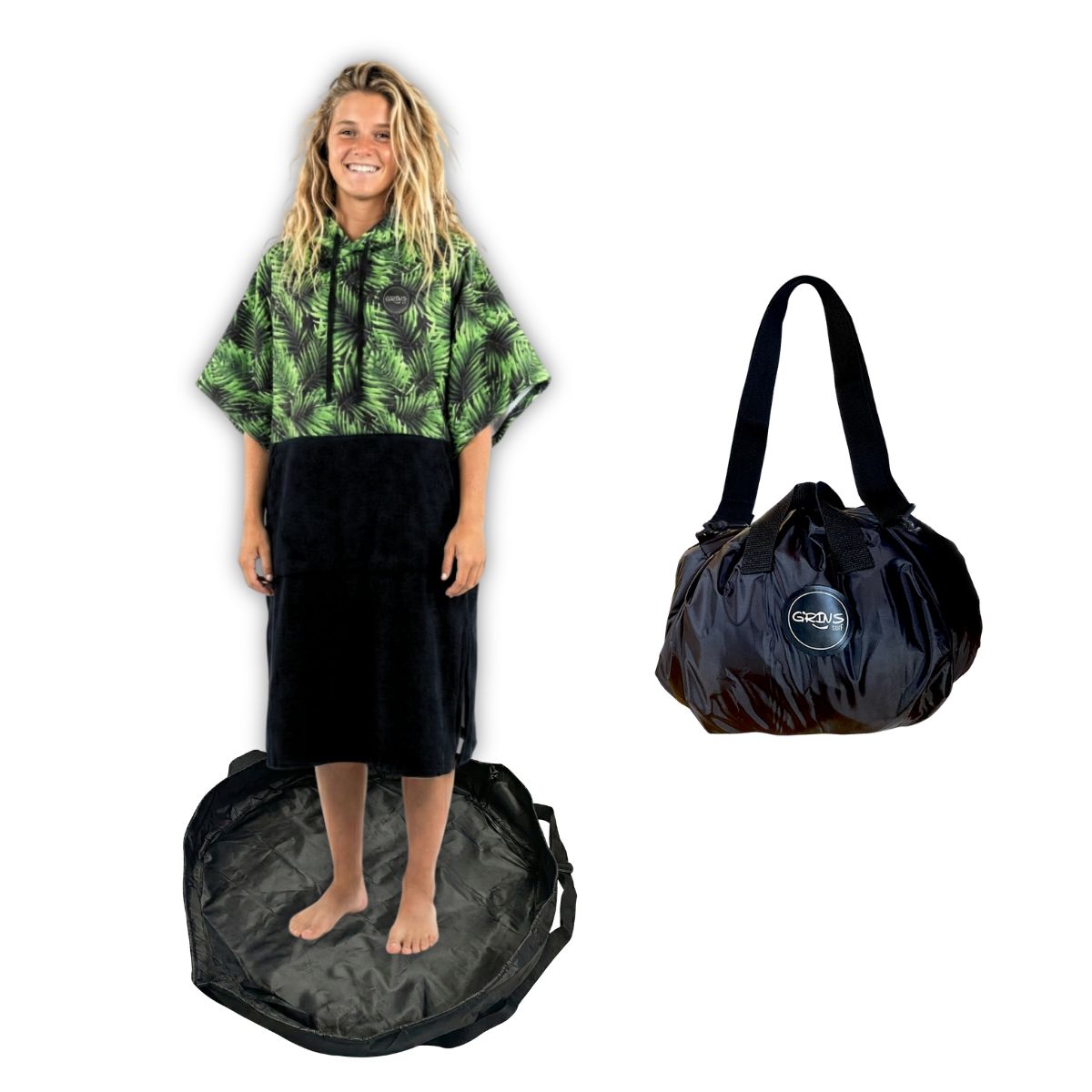 • Change Mat: Este cambiador te espera a la salida del agua: firme, limpio y listo para vos. Te cambiás sin pisar arena, barro ni piedras, después lo cerrás para llevar el neoprene mojado sin enchastrar nada. Es impermeable, práctico y fácil de llevar. Dejás todo lo mojado adentro, lo enrollás, lo cerrás… y listo! Llevalo como te quede más práctico, como bolsa con sus manijas, o como bolso con su correa regulable.