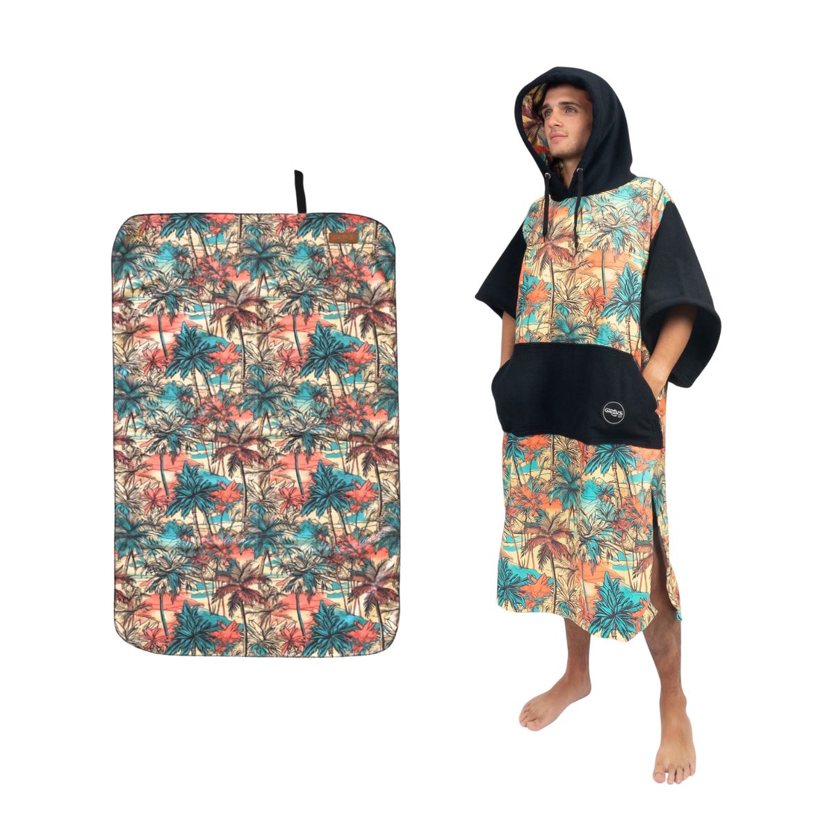 El Combo Palmar combina dos esenciales que te acompañan en cada metida, cada viaje y cada escapada al agua: el Poncho Cambiador y el Toalla de Microfibra.