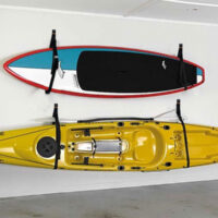 Este soporte te permite organizar y liberar espacio, permitiendote colgar en la pared fácilmente tu Kayak, tabla de surf, tabla de paddle sup, etc.