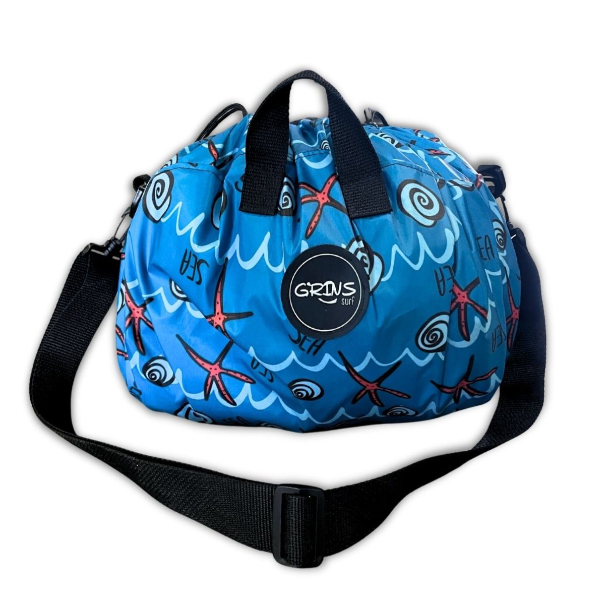 Dejás todo lo mojado adentro, lo enrollás, lo cerrás… y listo! Llevalo como te quede más práctico, como bolsa con sus manijas, o como bolso con su correa regulable. Porque cada cambio merece estar a la altura de tu aventura.