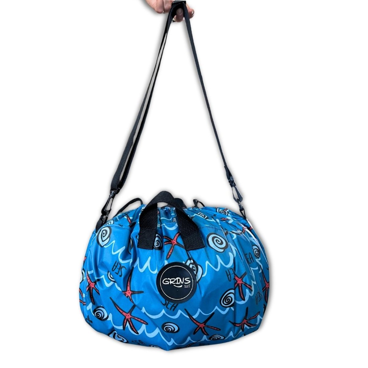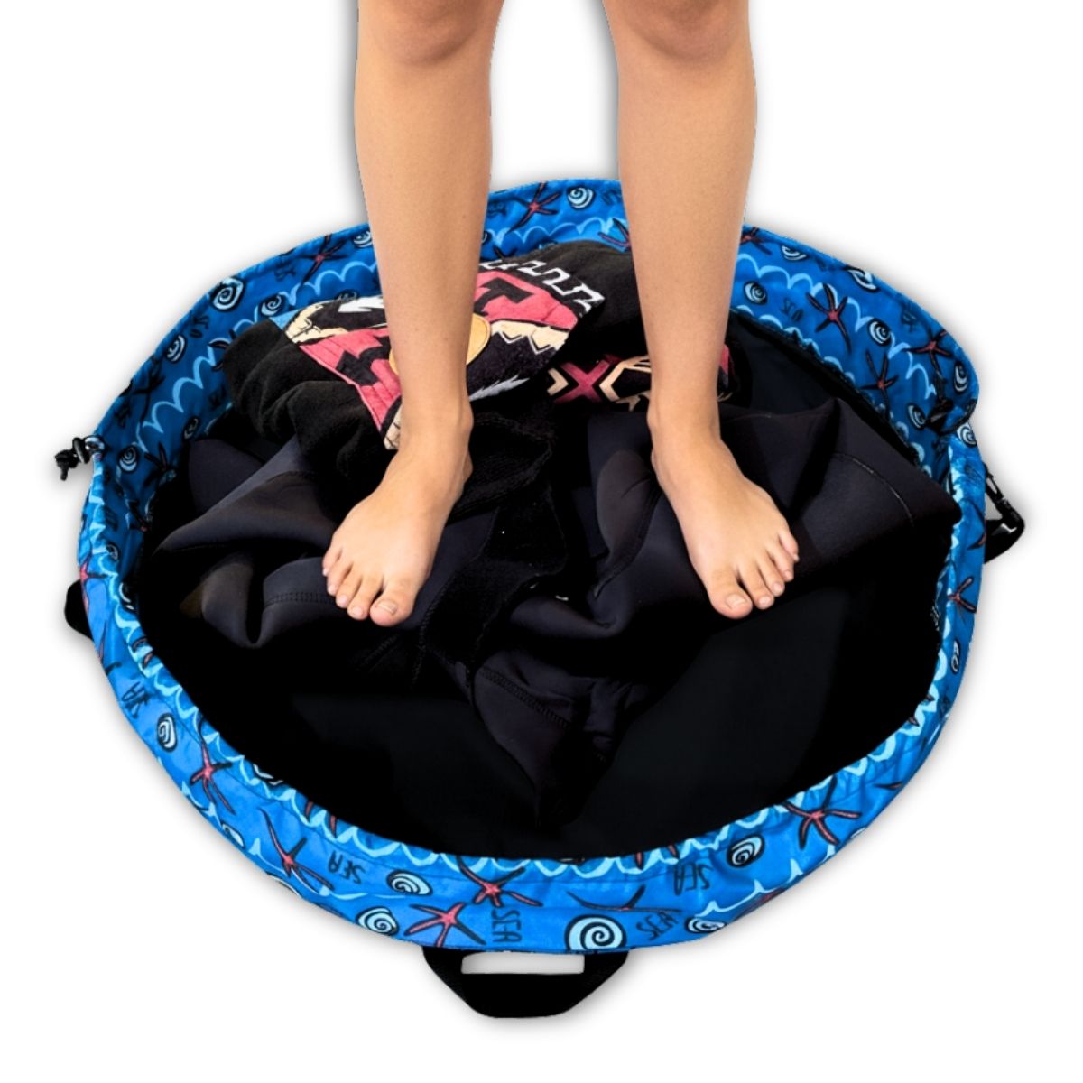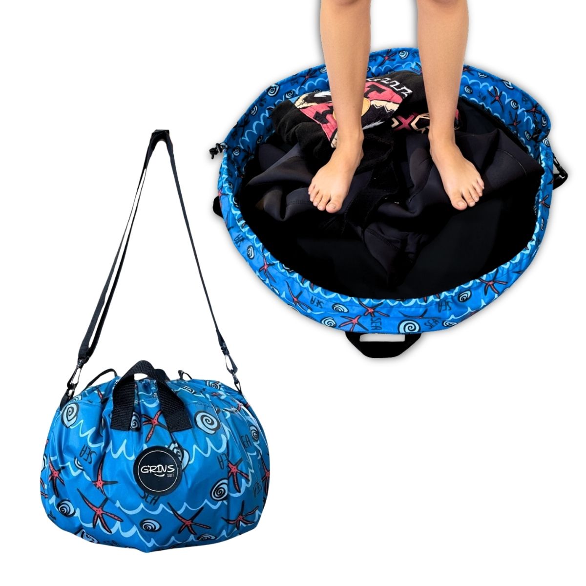 • Función: Permite cambiarse cómodamente sin ensuciarse; luego se convierte en bolso para guardar el neoprene y accesorios mojados.