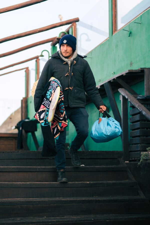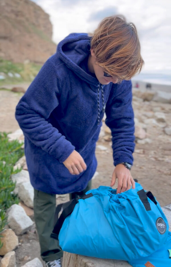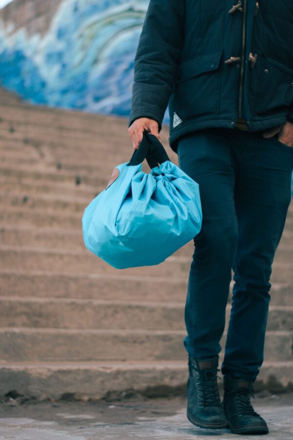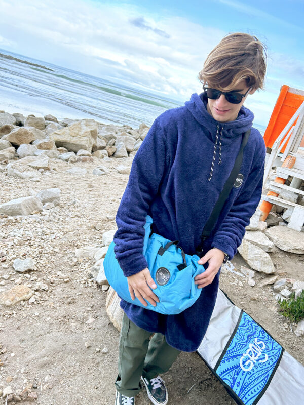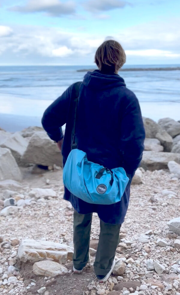 Dejás todo lo mojado adentro, lo enrollás, lo cerrás… y listo! Llevalo como te quede más práctico, como bolsa con sus manijas, o como bolso con su correa regulable. Porque cada cambio merece estar a la altura de tu aventura.