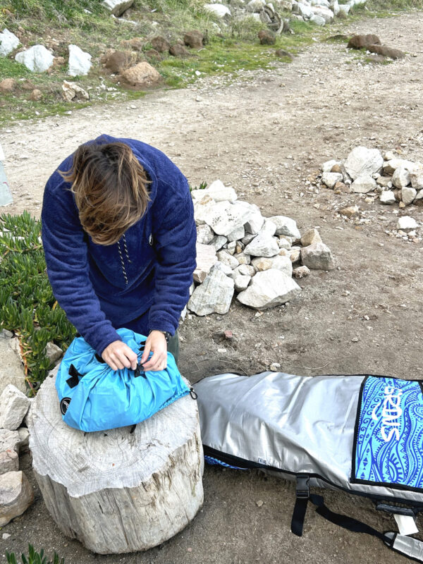 • Función: Permite cambiarse cómodamente sin ensuciarse; luego se convierte en bolso para guardar el neoprene y accesorios mojados.
