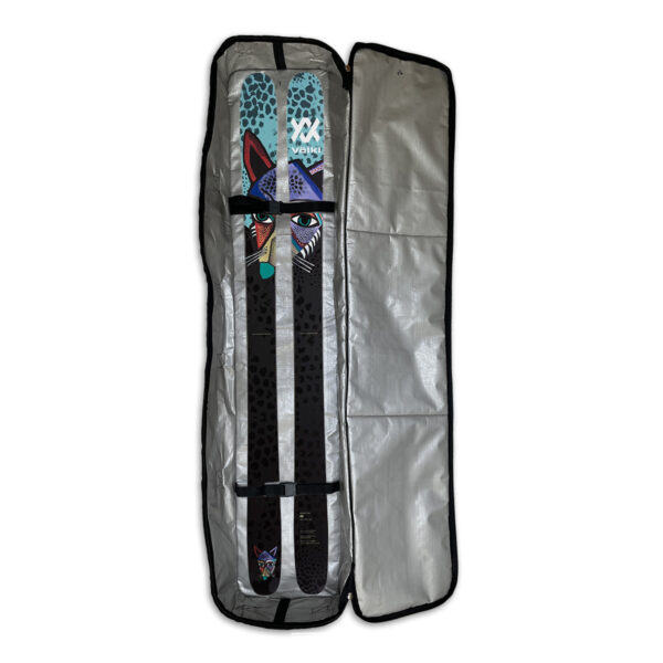 • Dos correas interiores ajustables para fijar los esquies.
