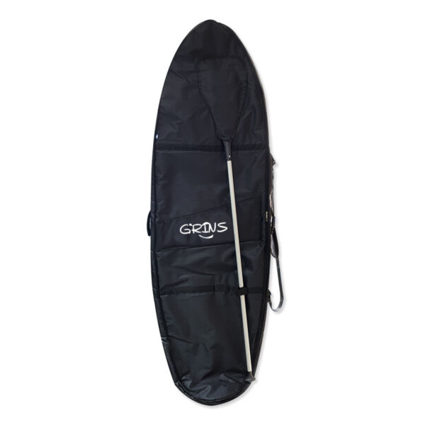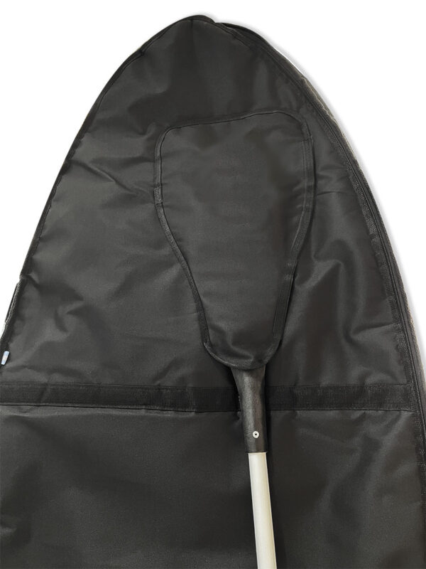 La funda incluye bolsillo exterior para guardar tu remo y ranura para la quilla central. Cuenta con un cierre robusto y un asa ergonómica de transporte cómoda, lo que facilita su manejo y movilidad. Esta funda combina funcionalidad y estilo, con detalles pensados para los amantes del paddle. Llevá tu equipo a cualquier parte sin preocupaciones y mantené tu tabla en óptimas condiciones con esta funda versátil y duradera.