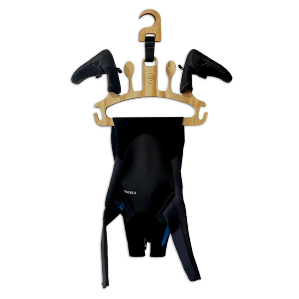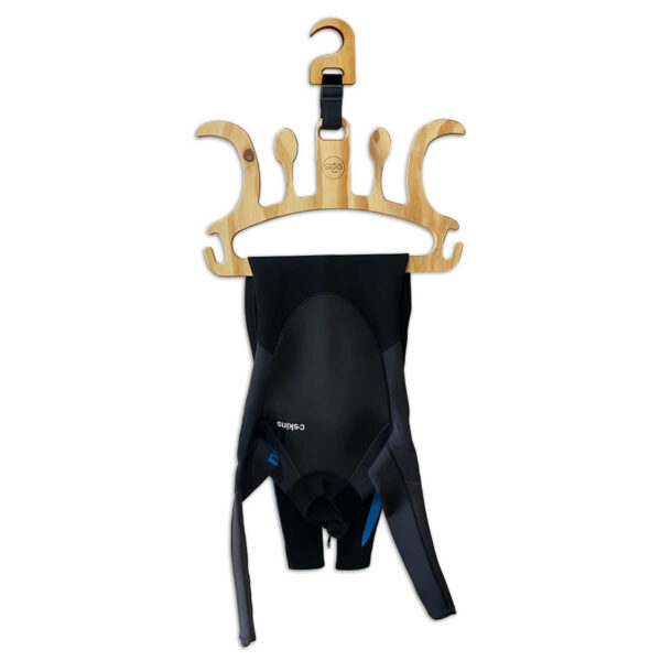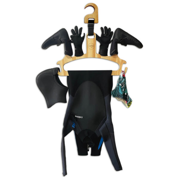 - Facilita el Secado: Gracias a su diseño, permite una ventilación óptima y facilita el secado uniforme de tu traje de neoprene. Esto ayuda a prevenir malos olores manteniendo tu equipo fresco y listo para usar.