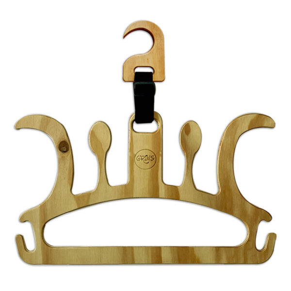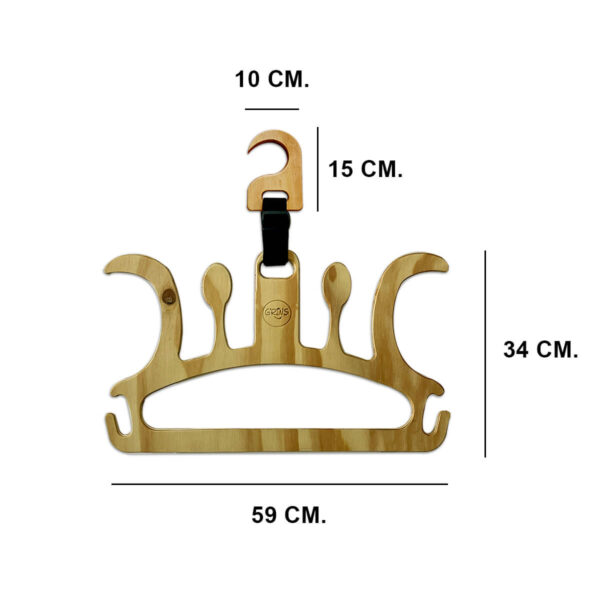 - Fácil de Usar: La percha es fácil de colocar en cualquier espacio de almacenamiento, ya sea en tu armario, en una habitación de secado o en una zona al aire libre, por ejemplo en un arbol o en la playa.