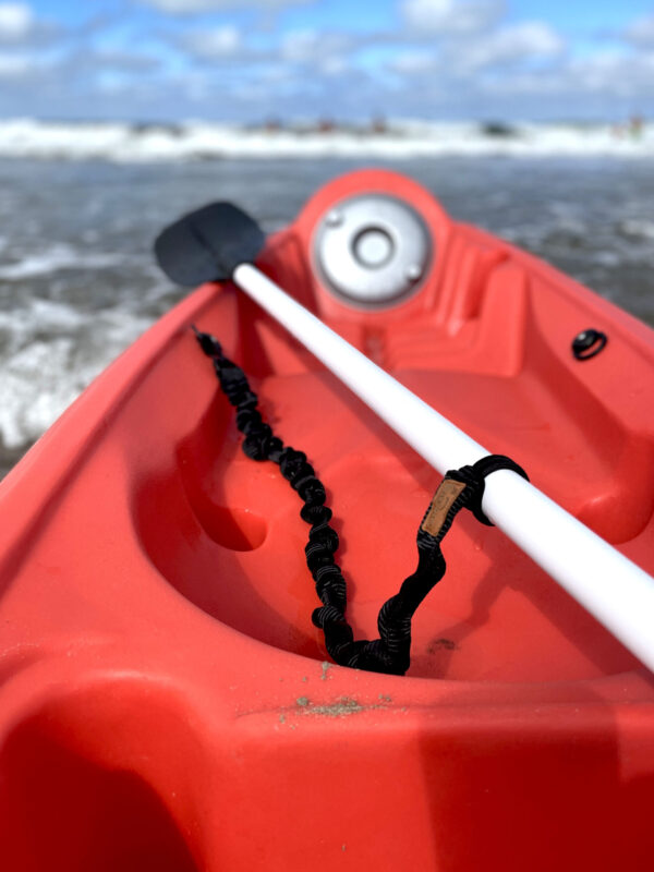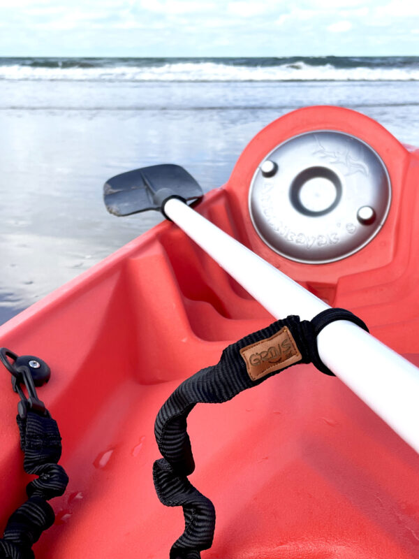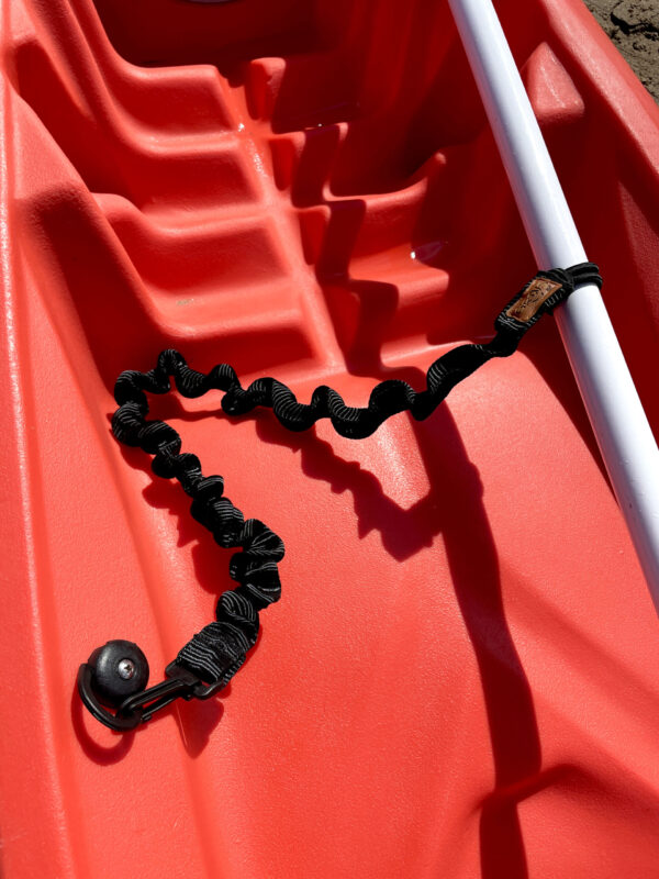 • Cuenta con cordón elástico en un extremo para asegurar al remo, y hebilla para asegurar al kayak en el otro extremo