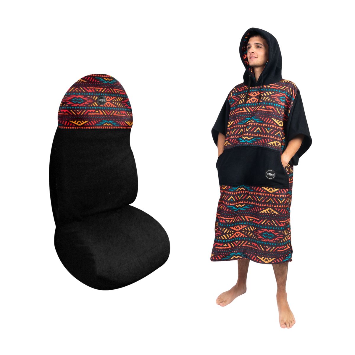 El Combo Latino combina dos esenciales que te acompañan en cada metida, cada viaje y cada escapada al agua: el Poncho Cambiador y la Funda Protectora de asientos.