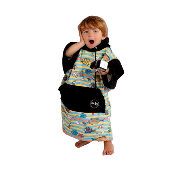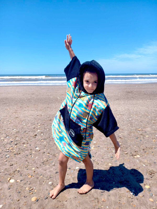 Este poncho fue creado para que los más chicos sigan jugando después del agua, sin pasar frío ni frenando la diversión.