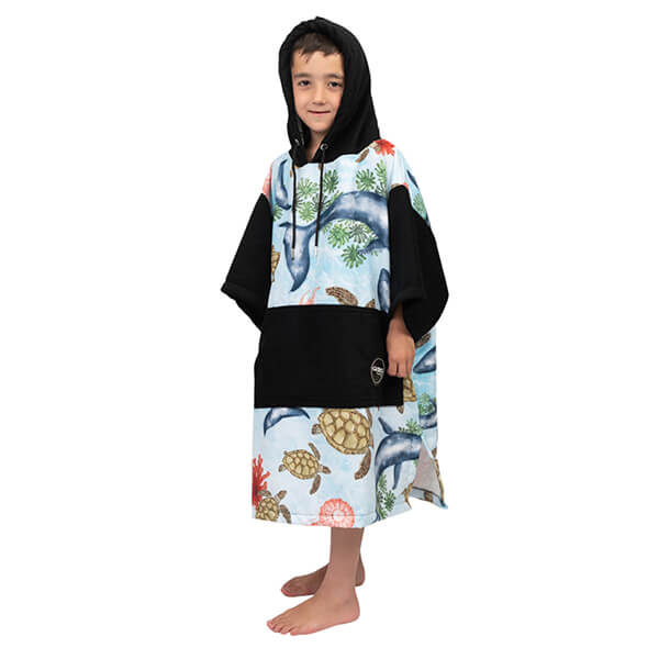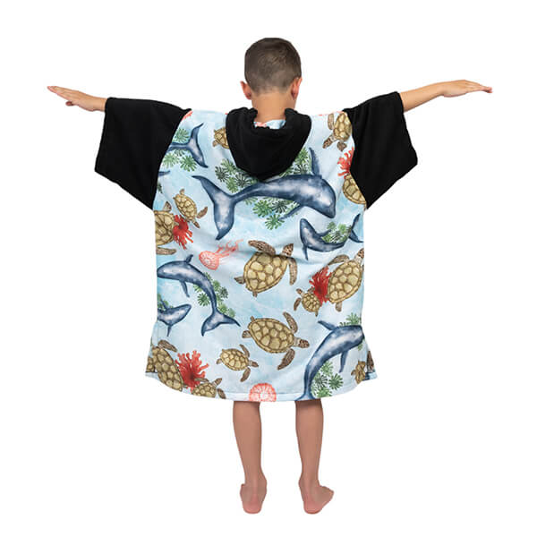 Este poncho fue creado para que los más chicos sigan jugando después del agua, sin pasar frío ni frenando la diversión.