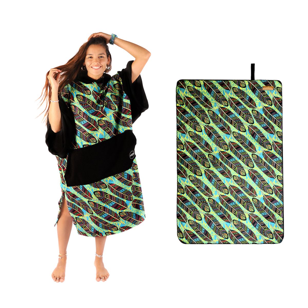El Combo Hulu combina dos esenciales que te acompañan en cada metida, cada viaje y cada escapada al agua: el Poncho Cambiador y el Toalla de Microfibra.