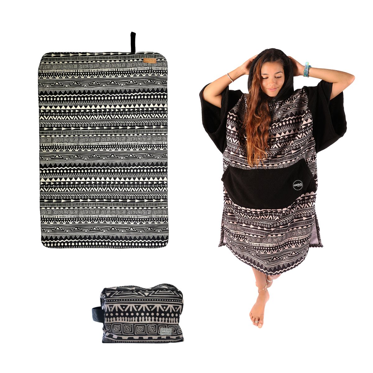 • Toallón Microfibra: Súper liviano, de secado rápido y fácil de llevar. Ideal para complementar con el poncho y secarte los pies, o para tener siempre en tu mochila o baúl y estar siempre preparad@ para un chapuzón sin peso ni volumen extra.