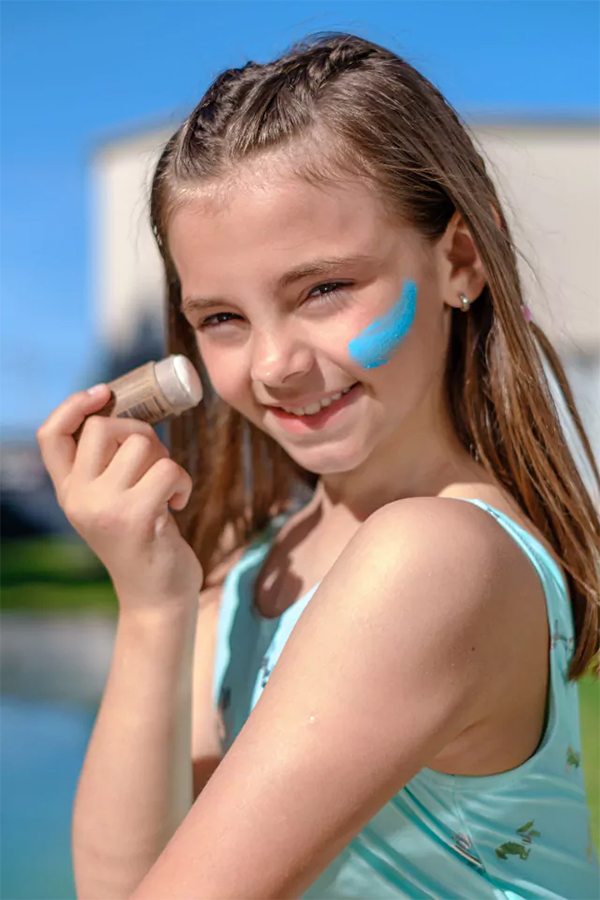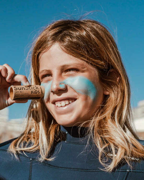 Un producto seguro y divertido para los más chicos, SunStick Kids en color azul y amarillo.
